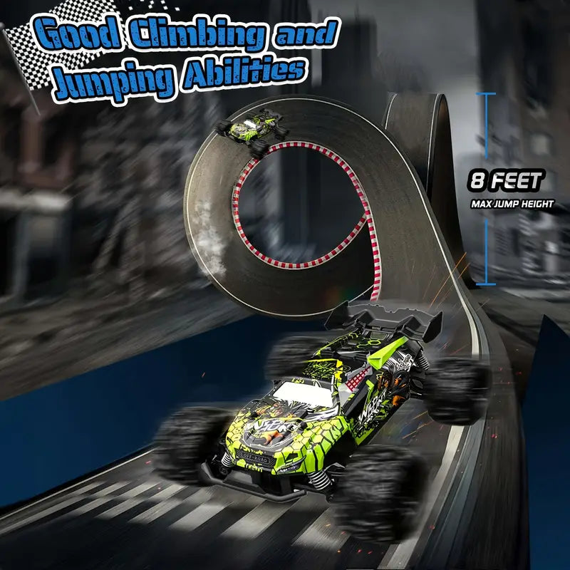 Built for adventure! With durable construction, rugged rubber tires, and a superior suspension system, this RC car conquers rocky paths, grassy fields, and bumpy roads with ease.